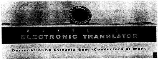 translated by a matrix of the crystal diodes into letters of the alphabet. The letters were displayed by the message display unit. Data: complete; finish, professional style; reliability, about 98%; maintenance, not difficult; costs about $4,000.