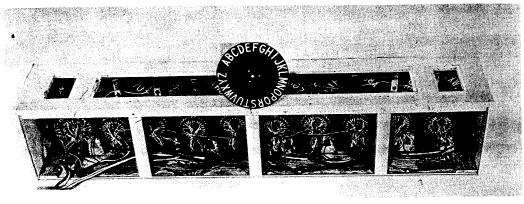 7. The Sylvania Message Display Robot (see Figure 4 -- no longer our robot) was constructed under order from. Sylvania Electric Products for the IRE Show, March 1956, New York. Its purpose was to show the use in handling information of three kinds of Sylvania's parts: photodiodes, crystal diodes and transistors. A member of the audience could have his name punched in code in paper tape. The punched tape was then read photoelectrically by the photodiodes, and the signals, amplified by transistors, were then